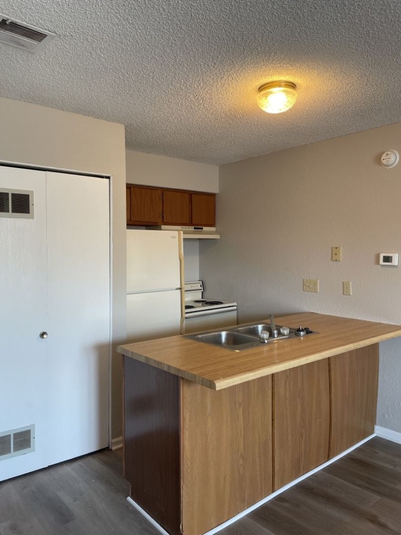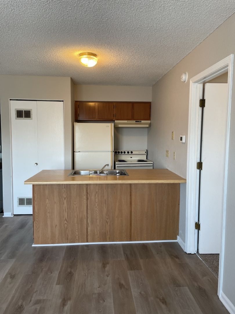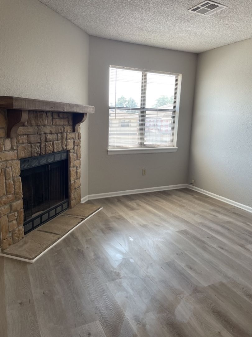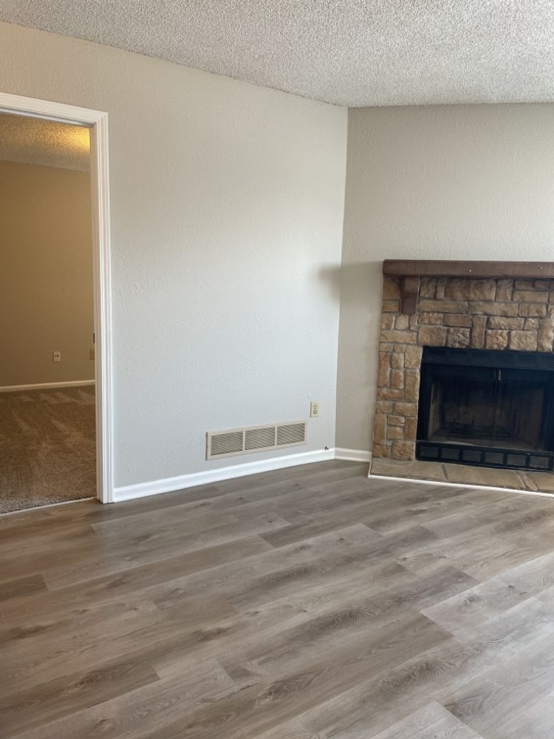 Beautiful LVP in kitchen, living room, and bathroom with carpet in bedroom. 1 bedroom 1 bath apartment in Kansas City near Zona Rosa! Home offers fresh 2-tone paint modern paint, large bedroom space with HUGE walk-in closet as well as a decorative fireplace in the living room. Home also features all major appliances including refrigerator, oven, dishwasher, garbage disposal and stackable washer/dryer.